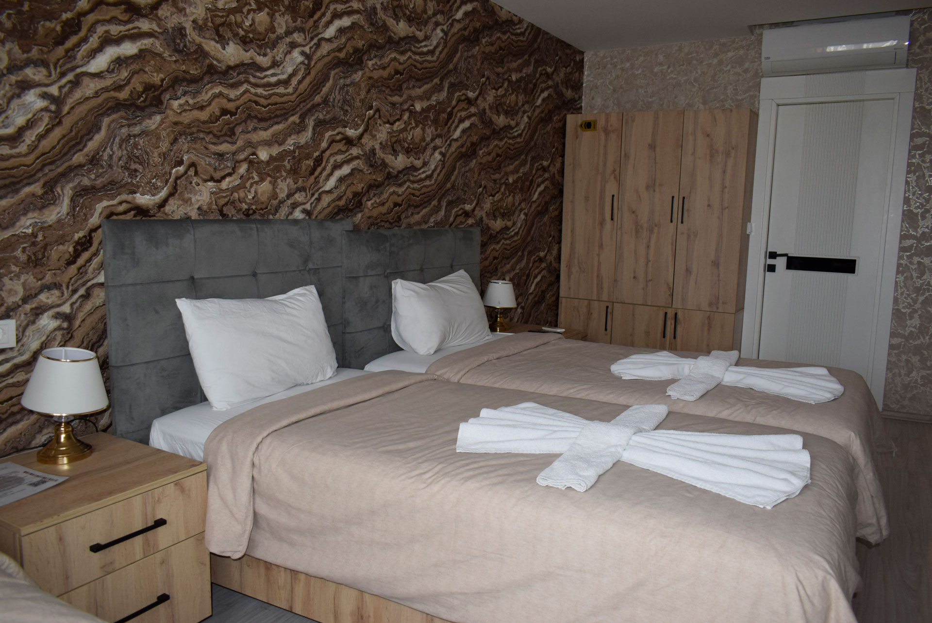 Tüm odalarımız; konforunuz düşünülerek mini buzdolabı, televizyon, ücretsiz Wi-Fi erişimi, 24 saat sıcak su, çay ve kahve ikramı ile elbise dolabı donanımlarıyla eksiksiz olarak hizmetinize sunulmaktadır.